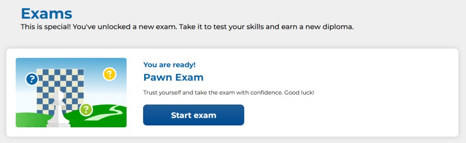 Chessto distributes these lessons to the student as a special mission. Mission accomplished? Then a new badge will be displayed on the homepage and the child is one a step closer to completing the level and entering the exam.