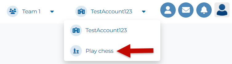 As a teacher or coach, you are automatically placed in the teacher environment upon registration. However, there is also an option to follow the Chessity learning path yourself! You can do this by switching environments at the top right of the screen. Click on your account name at the top right. Here you can change environments by clicking on Play chess. You will now see the same environment as users with an individual account. This way, you gain access to all lessons.